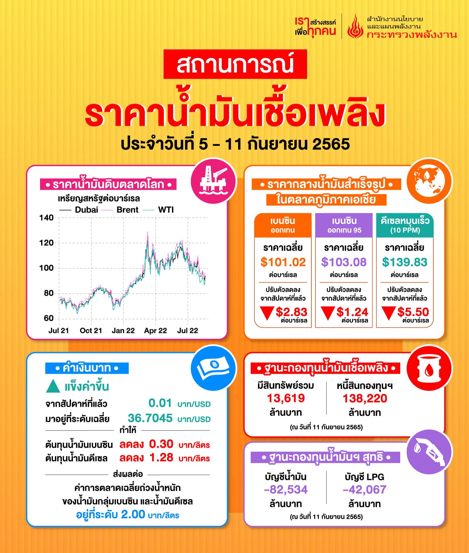 สถานการณ์ราคาน้ำมัน 5 - 11 กันยายน 2565
