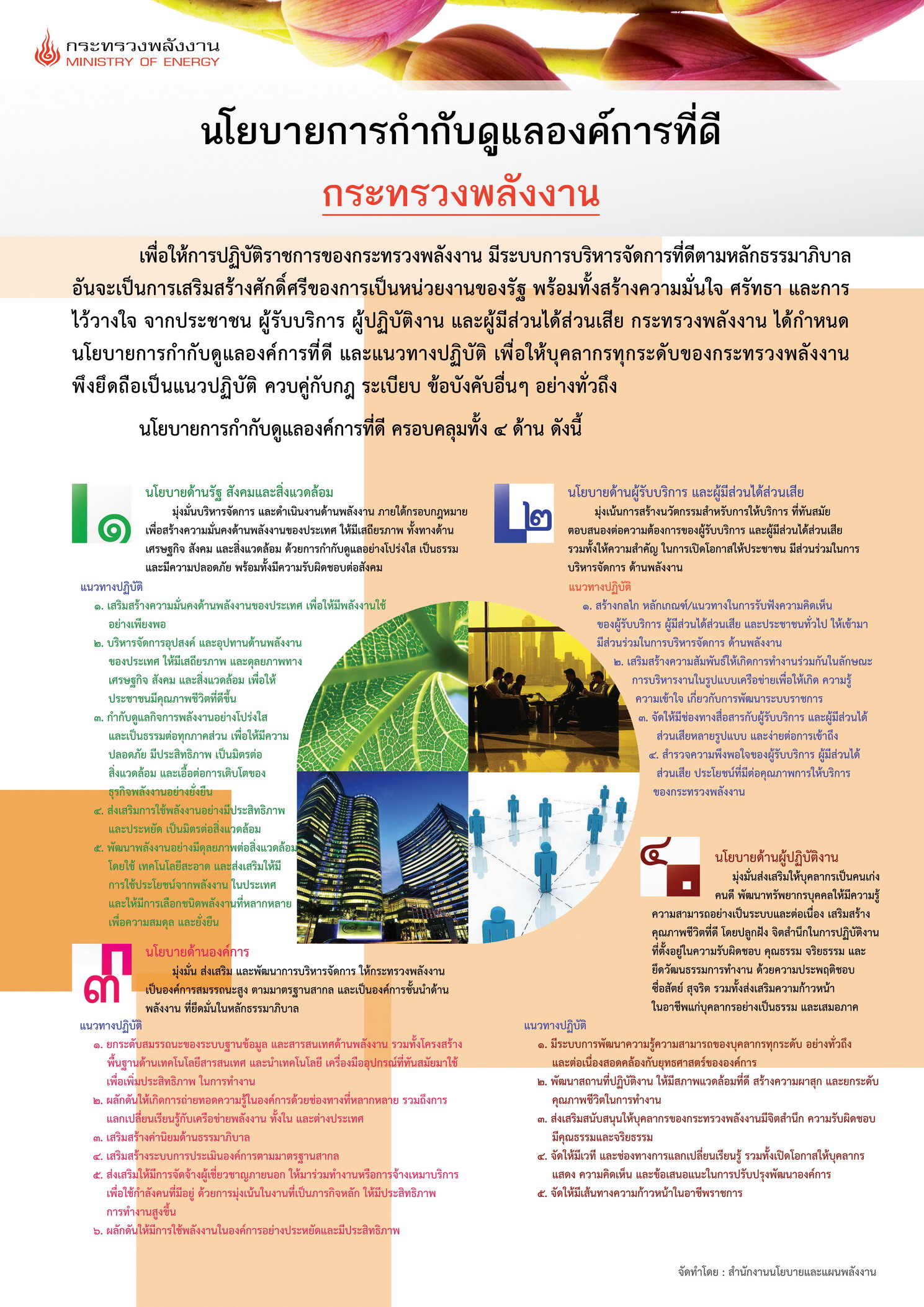 เพื่อให้เป็นไปตามเจตนารมณ์ของรัฐธรรมนูญแห่งราชอาณาจักรไทย พุทธศักราช 2550 และพระราชกฤษฎีกาว่าด้วยหลักเกณฑ์และวิธีการบริหารกิจการบ้านเมืองที่ดี พ.ศ. 2546 รวมทั้งให้สอดคล้องกับเกณฑ์คุณภาพการบริหารจัดการภาครัฐ (PMQA) โดยมุ่งเน้นการพัฒนาคุณภาพ การมีส่วนร่วมโดยใช้หลักธรรมาภิบาลของการบริหารกิจการบ้านเมืองที่ดีทั้งนี้เพื่อให้การบริหารราชการของกระทรวงพลังงานเกิดประโยชน์ต่อประชาชนโดยแท้จริง อันจะทำให้ประชาชนเกิดความมั่นใจและศรัทธาในการบริหารงานภาครัฐ