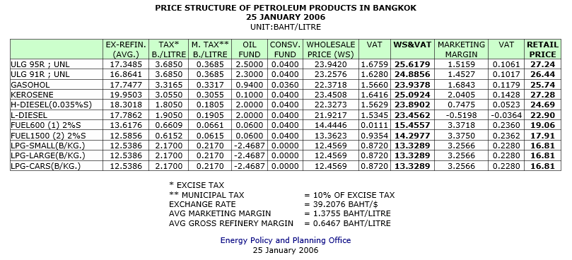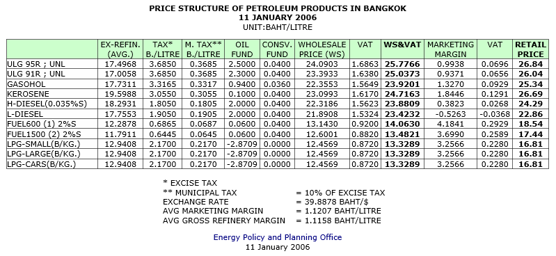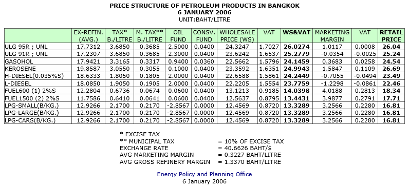 สถานการณ์ราคาน้ำมันเชื้อเพลิง 18-24 ธันวาคม 2549